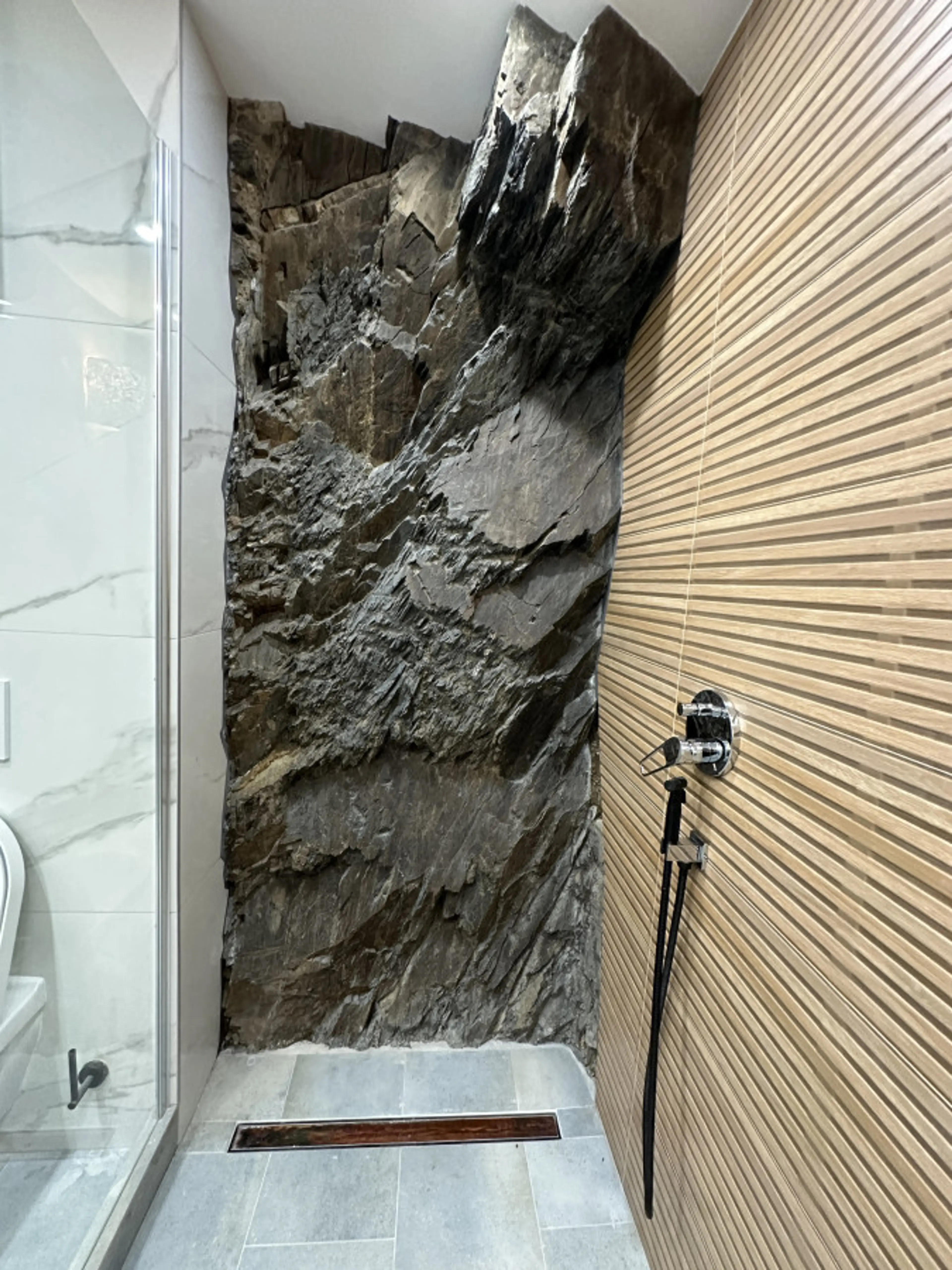Negative: Die sehr schöne Dusche hat zu wenig Wasserdruck